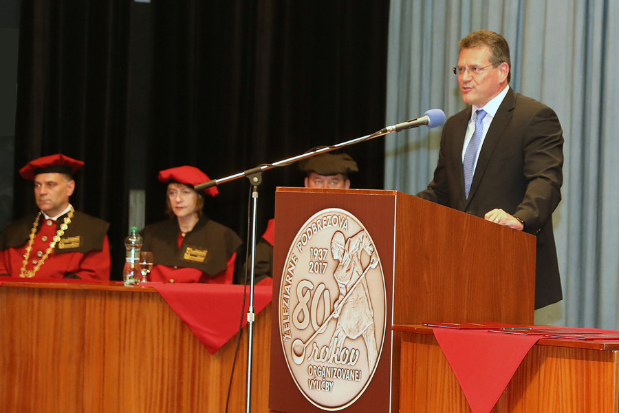Prítomných privítal predseda Predstavenstva ŽP a predseda Klubu 500 Vladimír Soták. Maroš Šefčovič vo svojom vystúpení, okrem iného, konštatoval: „Veľmi často sa rozprávam s predstaviteľmi priemyslu a dnes sme naozaj v situácii, že nám chýbajú odborníci, chýba nám vyškolený personál do našich fabrík. Ten model, ktorý sa tu v Podbrezovej dlho rozvíjal, kde študenti získavajú teoretické vedomosti a zároveň si to skúšajú aj v praxi, je niečo, čo budeme musieť dobudovať na celom Slovensku,“ povedal.