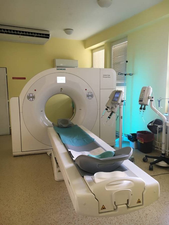 – CT vyšetrenie (počítačová tomografia) kombinuje röntgen a počítačový vyhodnocovací systém, ktorý rekonštruuje skenovaný obraz. Vyšetrenie prístrojom je bezbolestné a pacient pri ňom leží. Pri týchto vyšetreniach je možné rozpoznať aj štruktúry, ktoré sú veľké iba niekoľko milimetrov, takže je pre nás lekárov veľmi dôležitý. Najčastejšie sa používa na vyšetrenie mozgu, lebky, chrbtice či brušných a panvových orgánov.
