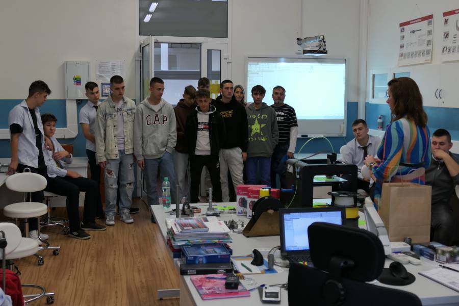 Učebňa metrológie, kde riaditeľka školy Miriam Pindiaková ukázala žiakom aj prácu s 3D tlačiarňou. Foto: T. Kubej