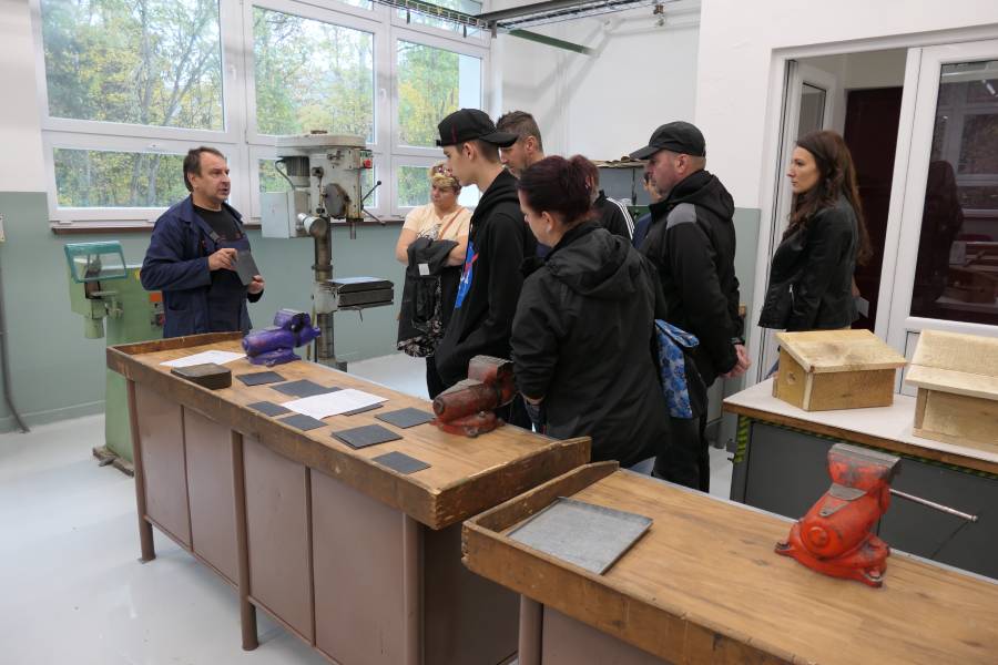 Dieľňa praktického vyučovania, v ktorej sa žiaci učia základy ručného spracovania kovov, pod vedením majstra odbornej výchovy Vlastimíra Veverku. 					  Foto: T. Kubej
