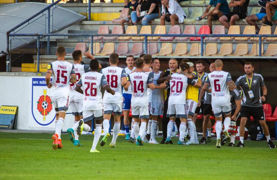 Favorit duelu mal po stretnutí kvalifikácie Ligy majstrov v gruzínskom Batumi ťažšie nohy a hoci tréner Vladimír Weiss st. obmenil všetkých hráčov základnej zostavy, nepomohlo to. Železiari sa tešili z gólu už v 16. minúte, keď sa po nahrávke Erika Grendela presadil nádhernou strelou z ľavého rohu šestnástky, presne pod brvno, Samuel Ďatko. „Takéto strely sa nedajú trafiť každý víkend. Som za to veľmi rád. Dal som si to na silnejšiu nohu, pravačku, a trafil som to parádne,“ neskrýval radosť strelec nášho úvodného zásahu. Ďatko pridal do polčasu aj druhý gól, no systém VAR odhalil ofsajd a presný zásah bol neuznaný. V nadstavenom čase prvého polčasu pohrozil aj Slovan, keď brvno nastrelil Ramirez.