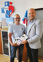 Ján Banas, vedúci odboru zásobovania (vľavo), odovzdáva Tomášovi Mydlovi, riaditeľovi NsP Brezno, vecný dar - bezkontaktné infračervené teplomery. 	                                               Foto: NsP BreznoJedným zo zriaďovateľov NsP je aj akciová spoločnosť Železiarne Podbrezová. Vzájomná spolupráca je na vynikajúcej úrovni aj vďaka Vladimírovi Sotákovi, generálnemu riaditeľovi ŽP a.s., čo potvrdil i nový riaditeľ nemocnice Tomáš Mydlo v rozhovore, ktorý sme vám priniesli v pätnástom čísle novín Podbrezovan. Pred niekoľkými dňami Nadácia Železiarne Podbrezová venovala zariadeniu 51 kusov bezkontaktných infračervených teplomerov, ktoré poslúžia pacientom na viacerých oddeleniach. Na napredovaní NsP v Brezne vedeniu našej akciovej spoločnosti záleží a aj preto jej neustále podáva pomocnú ruku v oblasti materiálovo-technickej, ale i morálnej podpory.