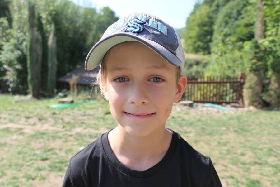 * Marek Kolaj, 8 rokov: V tomto tábore som druhýkrát. Najviac sa mi páči stavanie osád, ale aj smajlíka z prírodného materiálu. Boli sme sa aj kúpať, čo bolo super. Je tu veľmi dobre.