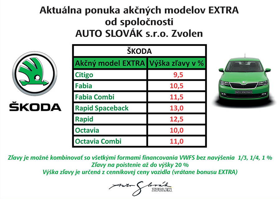 Aktuálna ponuka akčných modelov EXTRA od spoločnosti AUTO SLOVÁK s.r.o. Zvolen
