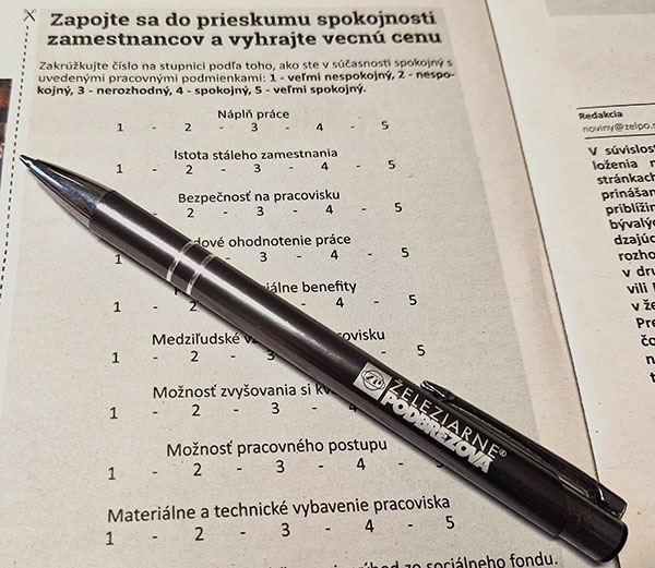 V čísle 22 novín Podbrezovan sme uverejnili prieskum spokojnosti zamestnancov. Jeho cieľom bolo zistiť, ako sú zamestnanci našej spoločnosti spokojní so zamestnaním, čo by zmenili, prípadne zlepšili a s čím, naopak, nie sú spokojní. Získaná spätná väzba je pre vedenie Železiarní Podbrezová cenným zdrojom informácií v snahe zlepšovať pracovné prostredie, procesy aj firemnú kultúru.