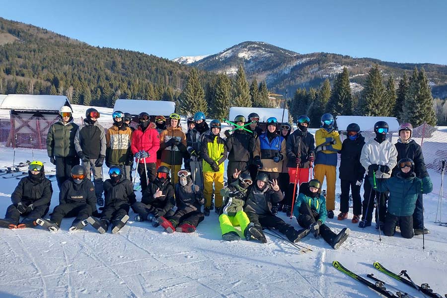Prváci zo Strednej odbornej školy hutníckej Železiarne Podbrezová počas lyžiarskeho kurzu. Foto: SSŠ ŽP